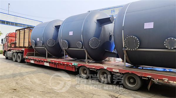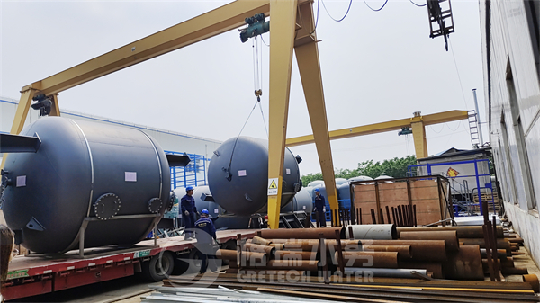 今天發(fā)的是20臺(tái)大型多介質(zhì)過(guò)濾器加配件,它們單只高4.8直徑3.4,用17米的大車(chē)進(jìn)行裝運(yùn),每輛車(chē)裝3臺(tái),師傅們安全熟練的操作著兩個(gè)行車(chē)進(jìn)行調(diào)運(yùn)裝車(chē)。這次發(fā)貨持續(xù)了近兩天時(shí)間,陸續(xù)7輛大車(chē)進(jìn)來(lái)裝車(chē),裝車(chē)后車(chē)隊(duì)緩緩的駛出廠(chǎng)區(qū),前往連云港港口,再通過(guò)海運(yùn)發(fā)往印尼項(xiàng)目現(xiàn)場(chǎng)。