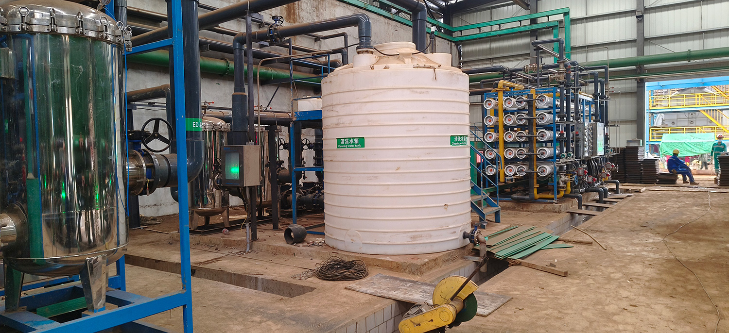工藝流程:多介質(zhì)過濾器+活性炭過濾器+超濾+雙極反滲透+EDI裝置